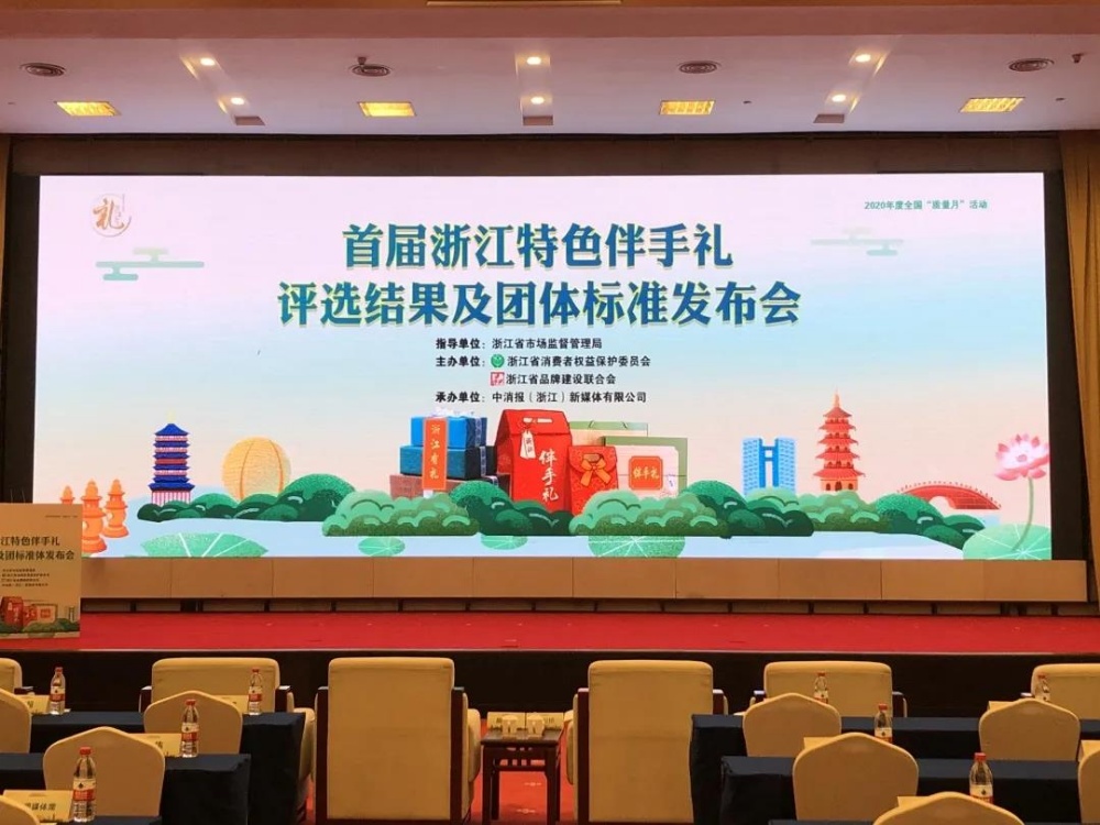 9月23日,由浙江省消費者權益保護委員會、浙江省品牌建設聯合會聯合舉辦的首屆浙江特色伴手禮評選結果及團體標準發布會在杭州之江飯店隆重舉行。