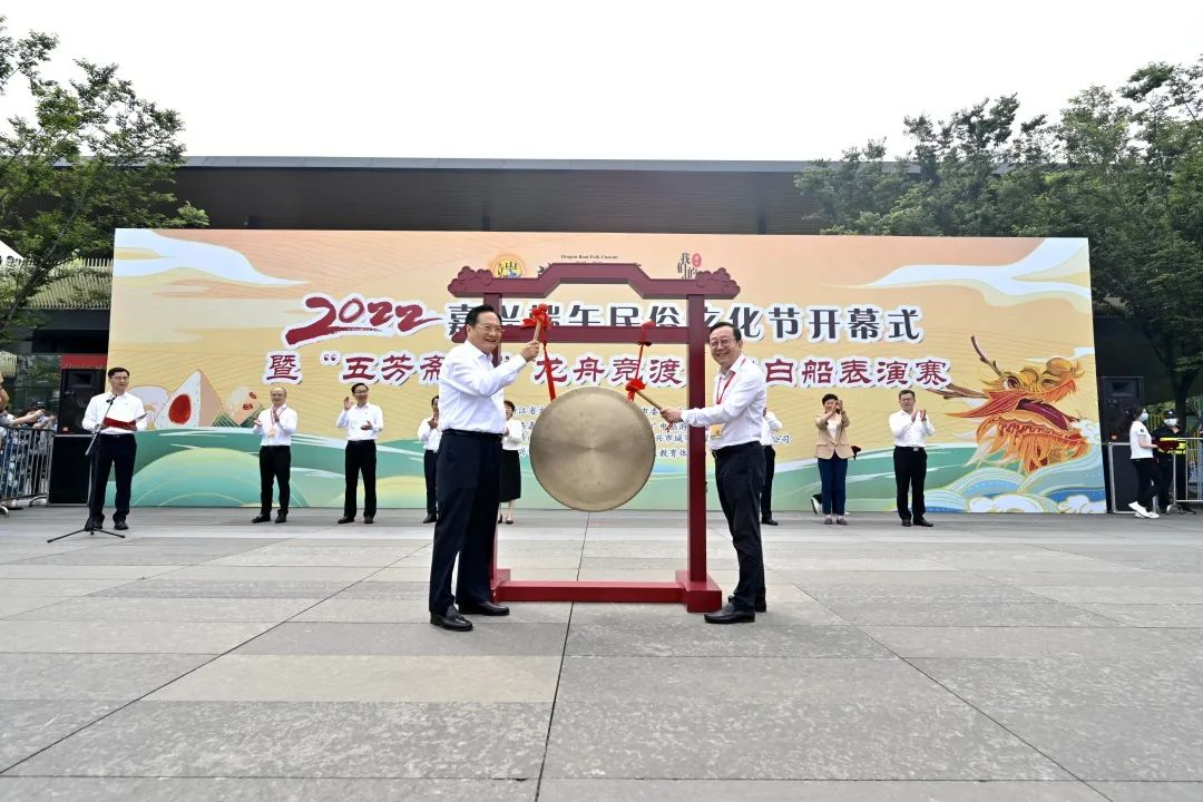 市委書記張兵,省文旅廳黨組成員、副廳長刁玉泉共同為2022年嘉興端午民俗文化節鳴鑼開幕!